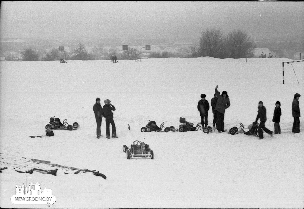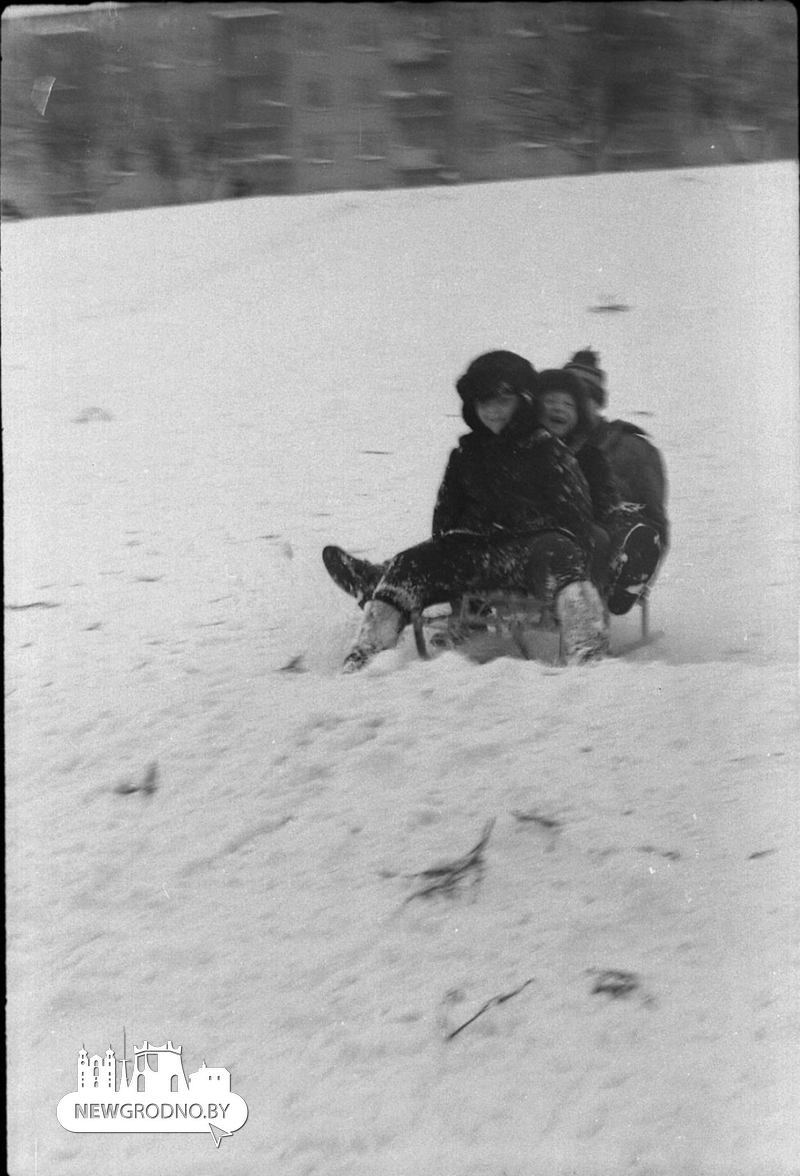Ледяная горка возле облисполкома, лыжники в парке и гонки на снегу: как выглядела зима в Гродно полвека назад