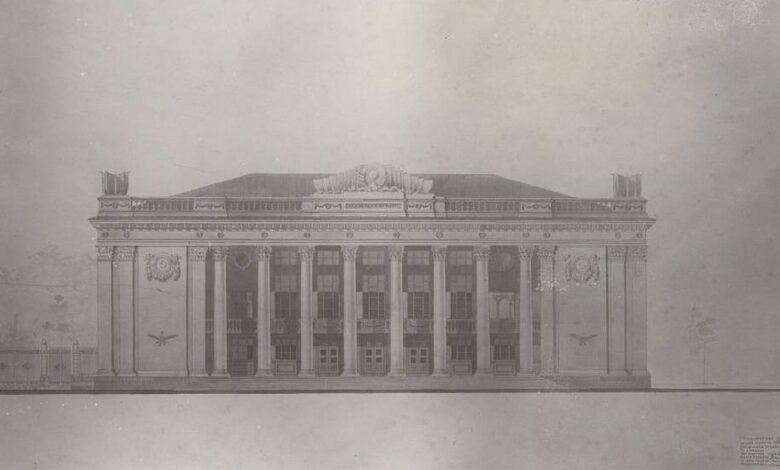 Интересно, что со временем реализованные проекты дворца упрощались, строители отказывались от дорогой лепнины и прочих украшений, придавая зданию довольно индустриальный вид. Гродненский дворец текстильщиков, открытый в 1959-м, оказался где-то посередине, его так и не украсили бетонными флагами и гербом СССР, как было на проекте. Но коринфские капители колонн сохранили.