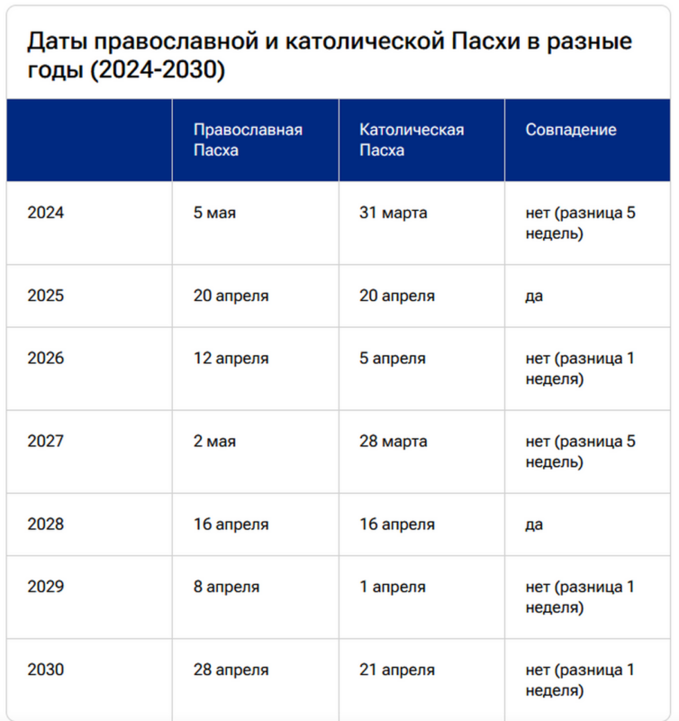 В 2026 году даты главного христианского праздника у разных конфессий выглядят так: