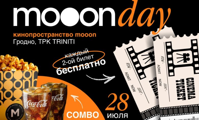 Афиша mooon на следующую неделю – просто жара! А если ты обожаешь кино, но не всегда готов тратиться на два билета, то акция mooonday – точно для тебя! Mooonday дарит идеальный шанс насладиться новинками большого экрана в компании друга/подруги или второй половинки — и при этом не платить! Не жди – забери второй билет бесплатно!