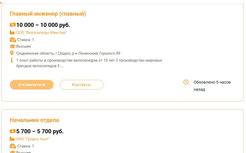 Впрочем, не всегда нужно высшее образование, чтобы зарабатывать на схожем уровне. «Гроднооблавтотранс» сейчас в поиске водителей грузовых автомобилей. Нужны права соответствующей категории и опыт от 2 лет. Зарплата – 5000 рублей. Открыты сразу несколько вакансий.