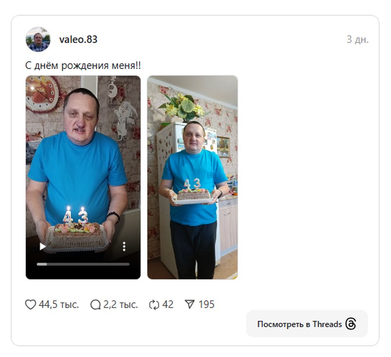 Валера позже поблагодарил людей за поздравления и опубликовал еще несколько постов с празднования дня рождения – с семьей и еще одним тортом.