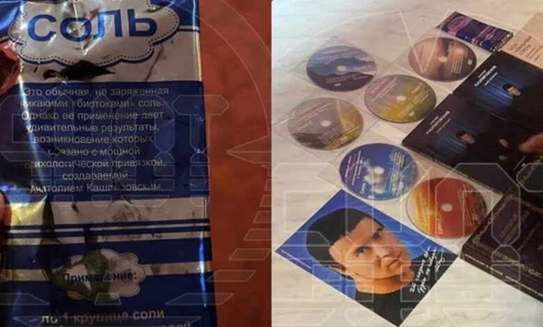 Новой визитной карточкой стала «волшебная соль». Это часть мерча наравне с дисками с сеансами, книжками с афоризмами, фото и даже флешками с собственными песнями. На самом деле это обычная пищевая соль, над которой «поработал» Кашпировский.
