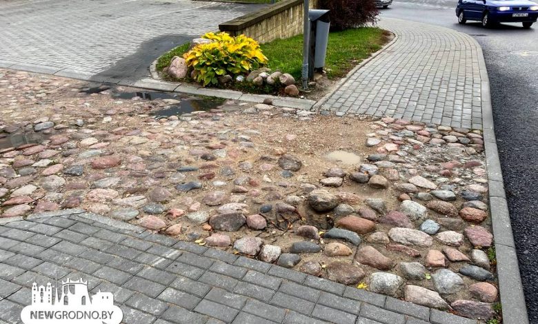 «Вот только пройти тут с коляской я не могу. Несколько камней вывалились, в ямах можно оторвать колеса», — пожаловалась молодая гродненская мама на небольшой участок брусчатки, который пересекает тротуар у выезда на Большую Троицкую.