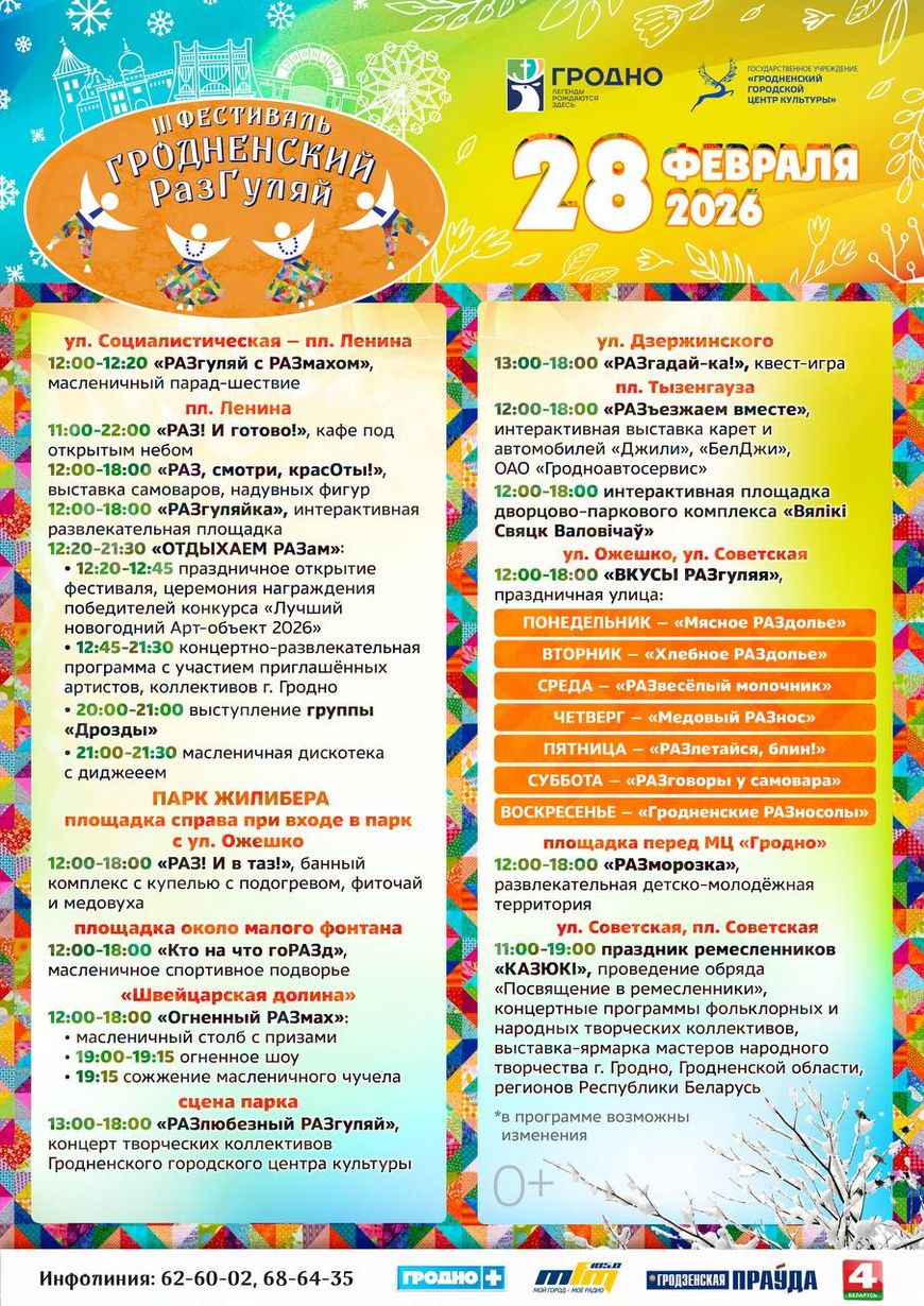 Апогей праздника — 28 февраля. В этот день Гродно превратится в одну большую площадку для гостей всех возрастов: