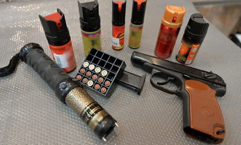 — газовое оружие – газовые пистолеты, газовые револьверы и патроны к ним, механические распылители, аэрозольные и другие устройства, снаряженные веществами слезоточивого или раздражающего действия, разрешенными к применению Министерством здравоохранения;