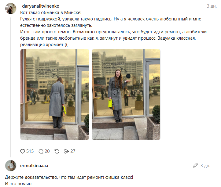 Маркетинг или темнота? Минский магазин предложил заглянуть в щель, но зритель остался недоволен