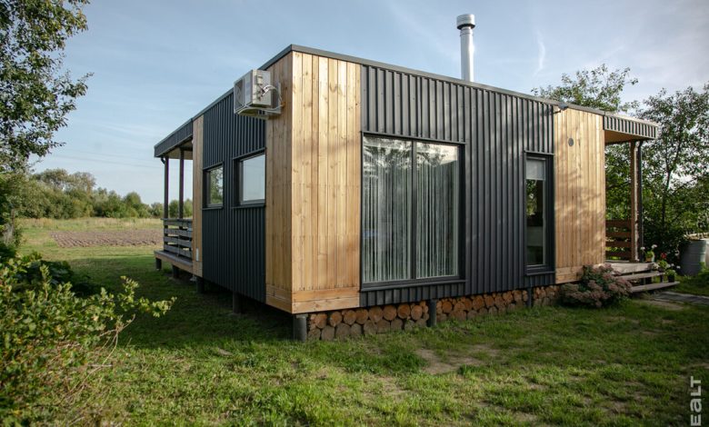 Ассоциации местных понятны — дом Алексея сильно отличается от деревенских хат. Он с плоской крышей и это в их глазах делает его отдаленно похожим на местный продмаг. На этом сходство заканчивается — фасад дома зашит деревянным планкеном и металлопрофилем графитового цвета, окна в пол, вместо фундамента — сваи. То есть, перед нами строение в современном стиле, для деревни такие в новинку.