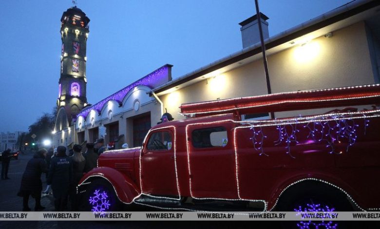 На 33-метровой башне пожарного депо в Гродно зажгли новогоднюю иллюминацию