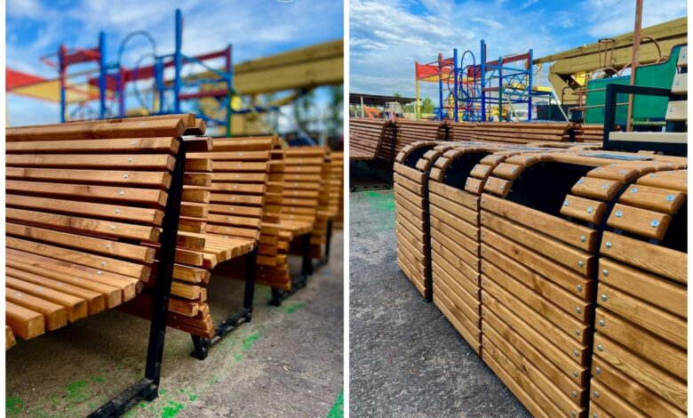 Сейчас специалисты укладывают тротуарную плитку, устанавливают фонари и монтируют качели-перголы. Одновременно завершается оформление стильных скамеек и урн — их «обшивкой» занимается УЖРЭП Ленинского района.