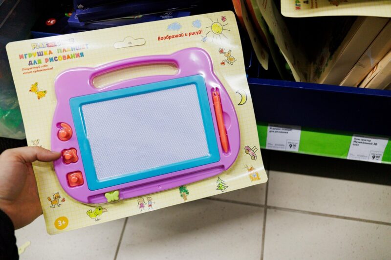 Позволяет детям рисовать, писать и создавать узоры с помощью ручки и 3 фигурных магнитов. Одно движение рычажком — и все исчезает! Для детей от 3 лет. Развивает моторику и воображение.
