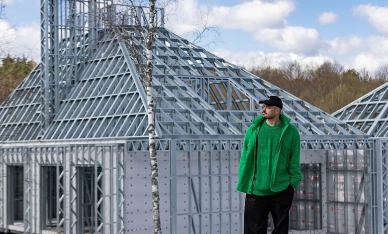Прямо сейчас один из таких больших коттеджей первым строится в Карпиловке — он принадлежит Алексею, соучредителю Zrobim architects. На участке уже смонтированы свайный фундамент и каркас из легких стальных тонкостенных конструкций.
