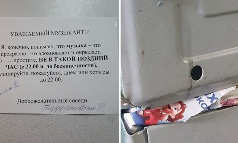 Продолжаем рассказывать про подъездные баталии, которые свершаются посредством записок (или даже крайне странных действий). В прошлый раз мы узнали, что попытаться «усмирить» соседей можно с помощью горки из носков, заботливо выложенной под дверью. Теперь черед новых странностей.