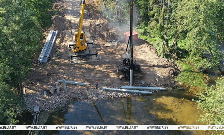 В Гродненском районе на месте моста, разрушенного после сильных дождей, ведутся работы по возведению нового, передает БЕЛТА.