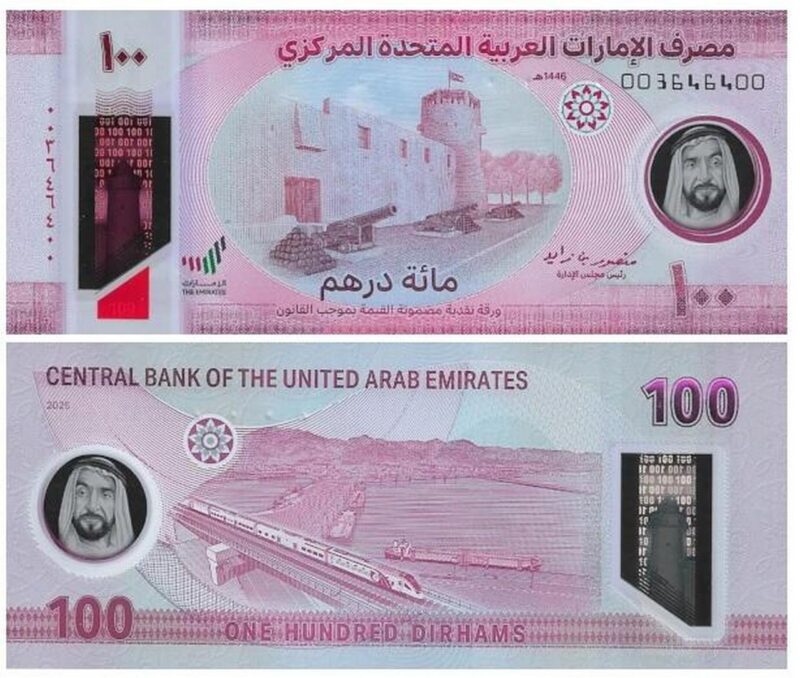 Азия тоже широко представлена. В списке памятные 20 юаней Китая и купюра Объединенных Арабских Эмиратов в 100 дирхамов.