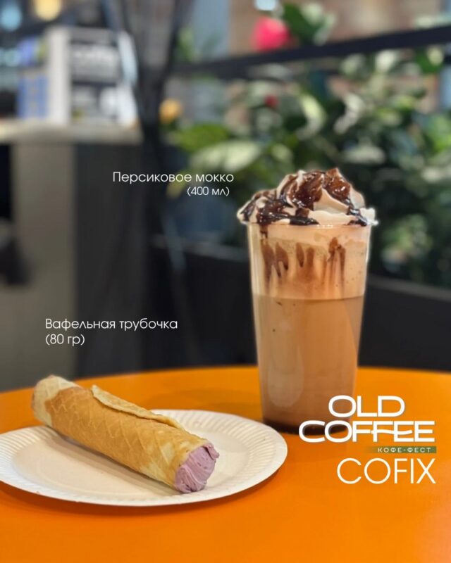 Cofix: Персиковое мокко (400 мл) и Вафельная трубочка в ассортименте (80 гр)