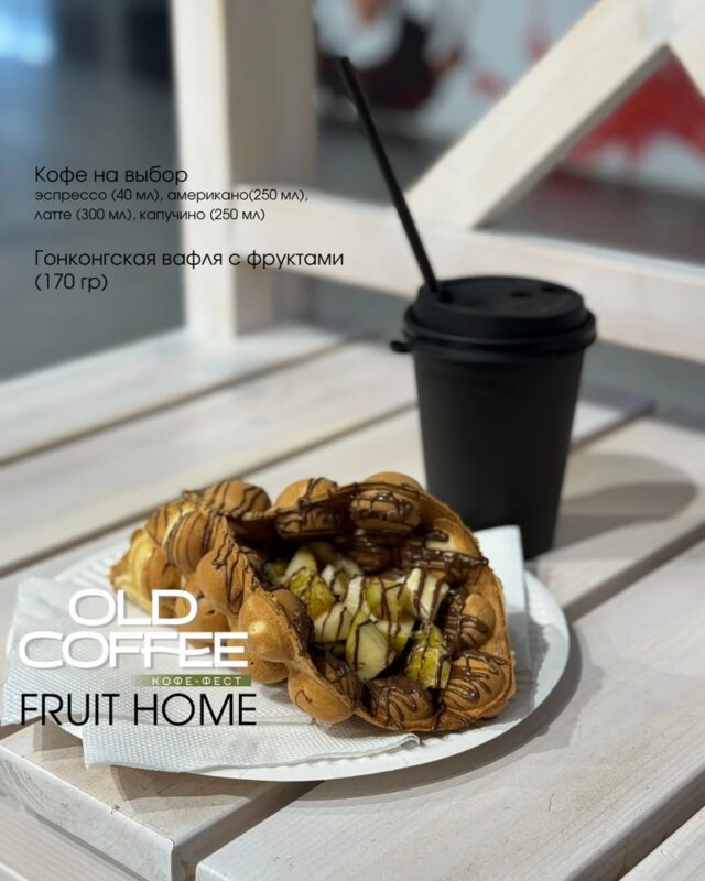 FruitHome: Кофе на выбор (эспрессо (40 мл), американо (250 мл), латте (300 мл), капучино (250 мл)) и Гонконгская вафля с фруктами (170 гр)