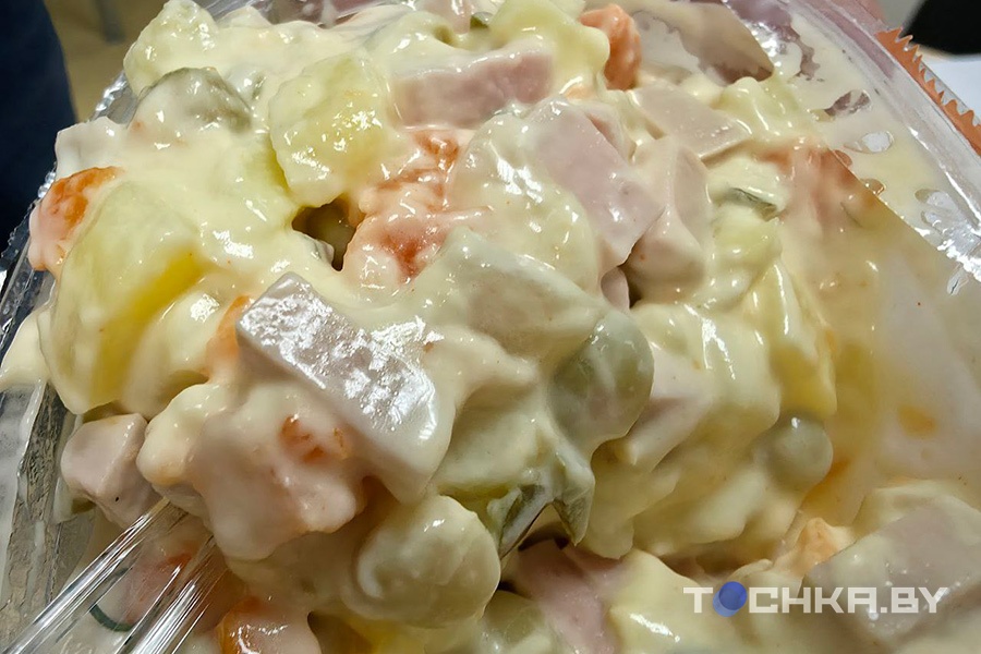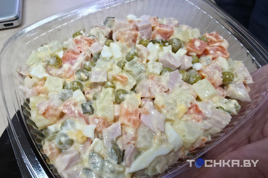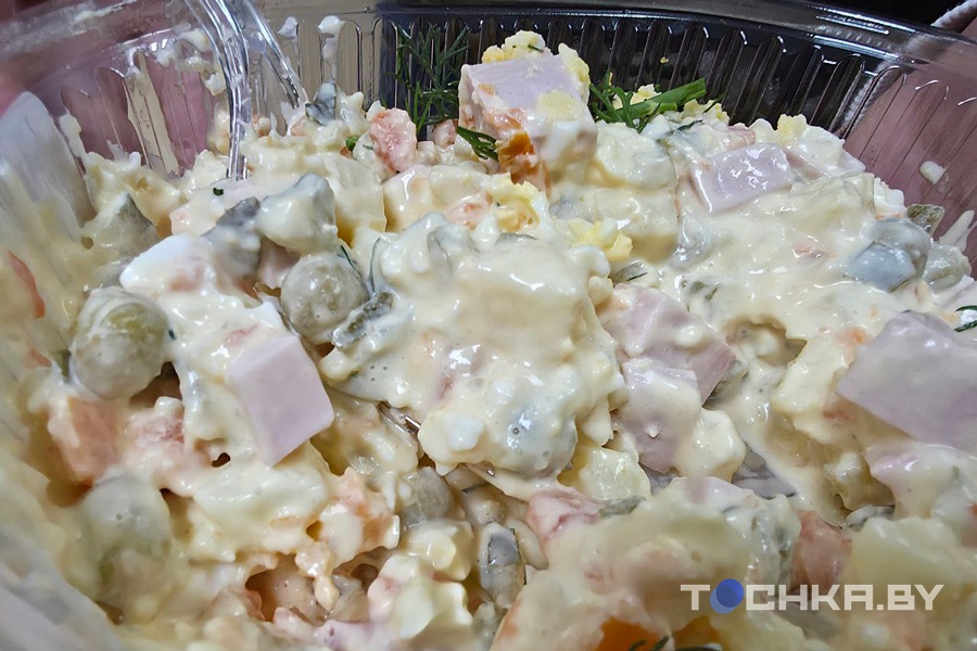 В кулинарии «Евроопт» купили оливье по Br15,49 за 1 кг. Что порадовало: на прилавке была специальная папка, в которой размещалось описание каждой салатной позиции.