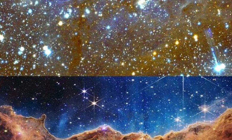 На опубликованных исследователями снимках видны яркие светящиеся туманности и огромные скопления звезд.