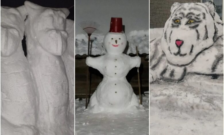 Необычные и волшебно красивые скульптуры из снега вылепил во дворе своего дома горожанин Денис Бурак.