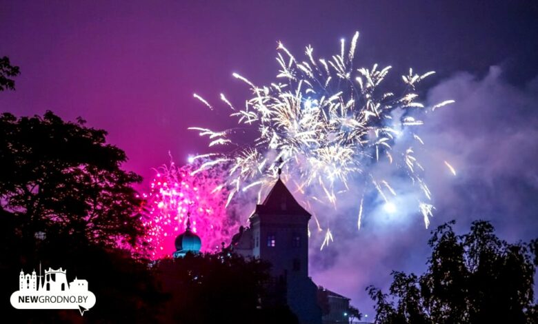 Залпы салюта раскрасили ночное небо над Гродно в цвета фестиваля.