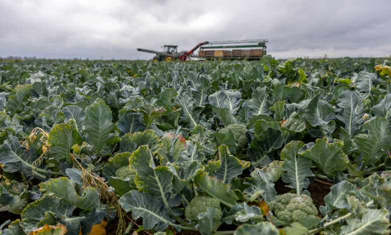 На часах почти полдень, а мы подъезжаем к полю, где активно срезают брокколи. Сейчас идет вторая волна сбора урожая, первая стартовала в июне и длилась примерно месяц. Аромат капусты ни с чем не перепутать: в нем и нотки свежести, и сразу ощущаешь в воздухе как будто пользу для организма.