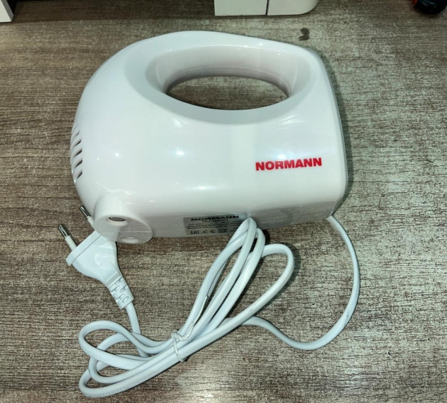 Речь идет о кухонном помощнике Normann AMX-474. Примечательно, что работает миксер без нареканий, и опасен он не из-за того, что, например, может ударить током.