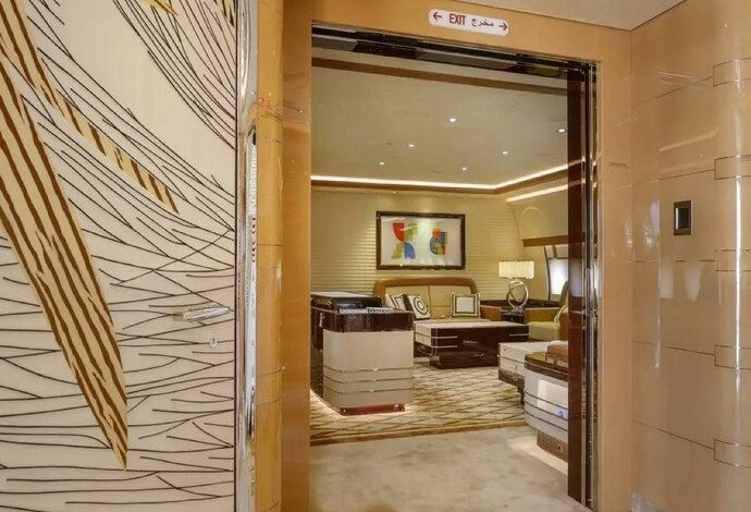 Главная спальня с полноценной ванной комнатой, включая душевую кабину, находится в носу лайнера, непосредственно под кабиной пилотов. Это место наиболее удалено от двигателей, а потому считается самым тихим. Кроме того, внутри имеется несколько гостевых спален, также с санузлами, парадный салон, выполняющий функции гостиной и столовой, рабочая зона с кабинетом, а также отдельные пространства для экипажа и гостей, сопровождающих владельца. Тот много путешествует с большой семьей, но места в итоге хватает всем, ведь это самый большой личный самолет в мире.
