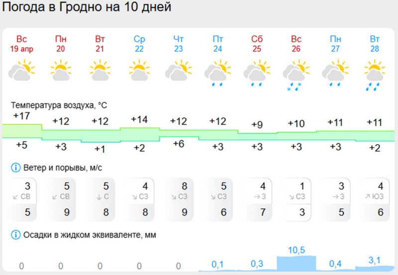 Температура воздуха ночью составит от минус 3 до плюс 3 градусов, а на юге — до +6. Днём столбики термометров покажут от +8 до +14 градусов.