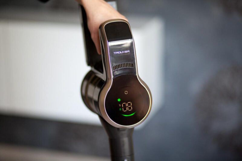 Внимание к деталям — одна из сильных сторон Trouver J40. На ручке расположен информативный LED-дисплей, который отображает заряд аккумулятора, текущий режим работы и состояние контейнера для пыли. Благодаря этому уборка становится более осознанной: вы точно знаете, сколько времени ещё можете работать без подзарядки и когда нужно очистить контейнер. Такой уровень контроля помогает избежать неприятных сюрпризов, например, внезапного отключения в середине уборки.