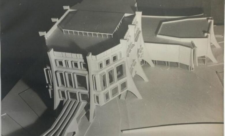В Музее архитектуры имени А. В. Щусева в Москве хранятся эскизы Гродненского драмтеатра, на них здание очень похоже на современное, но куда ближе к архитектурному направлению – брутализму. Вместо полукруглых арок – квадратные и прямоугольные окна, крыша над крыльцом неровная, будто сделана из гофрированной жести. Одним словом – настоящий луноход. Полностью закончен и утвержден проект драмтеатра был к середине 1970-х годов.