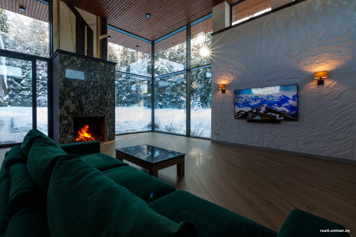 К дому ведет проселочная дорога, утопающая в снегу. Она заканчивается ровно у автоматических ворот. За высоким ограждением скрывается одноэтажный коттедж с панорамными стеклянными окнами. Дальше — только лес. Ни соседей, ни посторонних глаз. Максимальная приватность, которую так ценят состоятельные покупатели.
