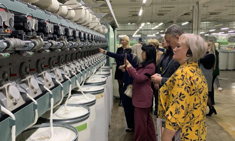 Российским гостям показали образцы продукции, а также то, как происходит процесс производства волокна и нитей в цехах.