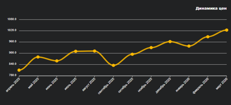 Средняя цена метра в городе по итогам марта была 1023$ (или +35$) за месяц, что является рекордной цифрой для последнего времени. Планка в 1000 долларов за метр очень бодро была взята рынком в первый весенний месяц.