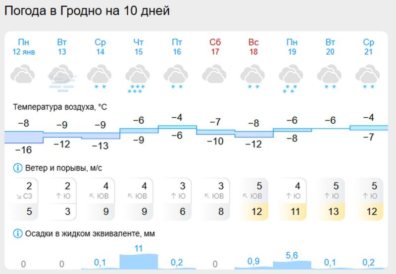 Синоптики Белгидромета дали прогноз погоды на неделю с 13 по 18 января. Согласно их данным, белорусов ждёт резкая смена погодных сценариев, рассказывает БЕЛТА.