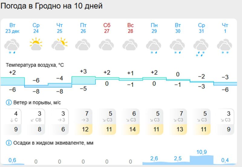 Однако рано радоваться: температура начнет повышаться, как и вероятность выпадения мокрого снега или дождя. При этом 26–28 декабря усилится ветер порывами до 15–20 м/с.
