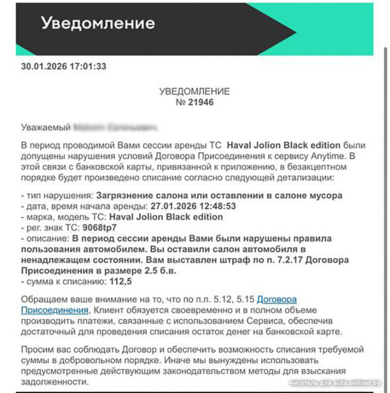 Вот такая история приключилась с одним минчанином. Мужчина продал свою машину и пока находился в поисках новой, пользовался каршерингом Anytime. И всё бы ничего, но однажды он просто забыл выбросить мусор после поездки — оставил пакет в багажнике. На следующий день, когда он попытался снова арендовать авто, оказалось, что его аккаунт заблокирован, да еще и оштрафован на 112,5 рубля (2,5 базовой величины) за нарушение правил.
