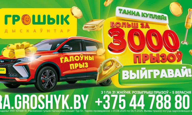 Срок рекламной игры «Шчаслiвы кошык! Тур 5» с 01.08.2025 по 06.11.2025. Подробности — на сайте igra.groshyk.by или по телефону +375 44 788 80 26.