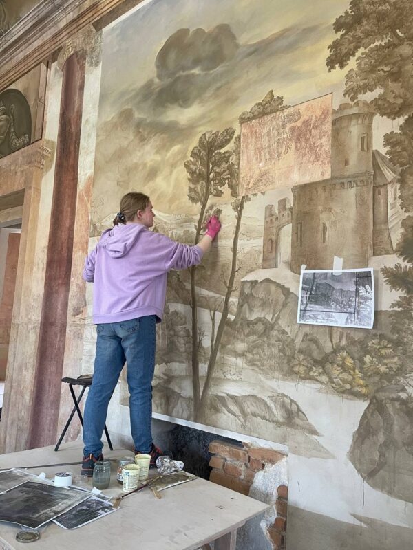Будущие художники-монументалисты под руководством опытных реставраторов воссоздают темперную живопись и орнаментальные росписи на стенах и потолках дворца. Памятник архитектуры и садово-паркового искусства второй половины XVIII — начала XIX века является объектом культурного наследия Беларуси.