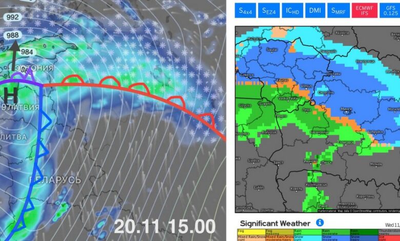 Ухудшится погода и в нашей республике (1). Уже завтра к концу дня и ночью 20 ноября. В зоне теплого фронта пройдут осадки: снег, мокрый снег переходящий в дождь(2).