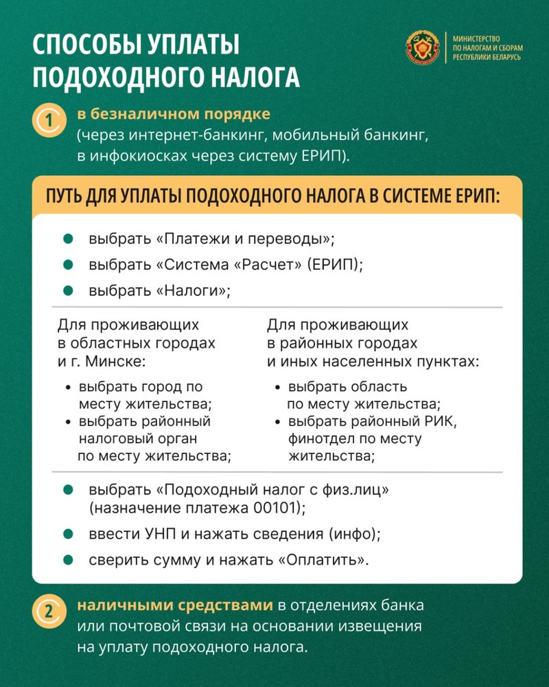 В инфографике, подготовленной МНС, указан алгоритм для уплаты подоходного налога.