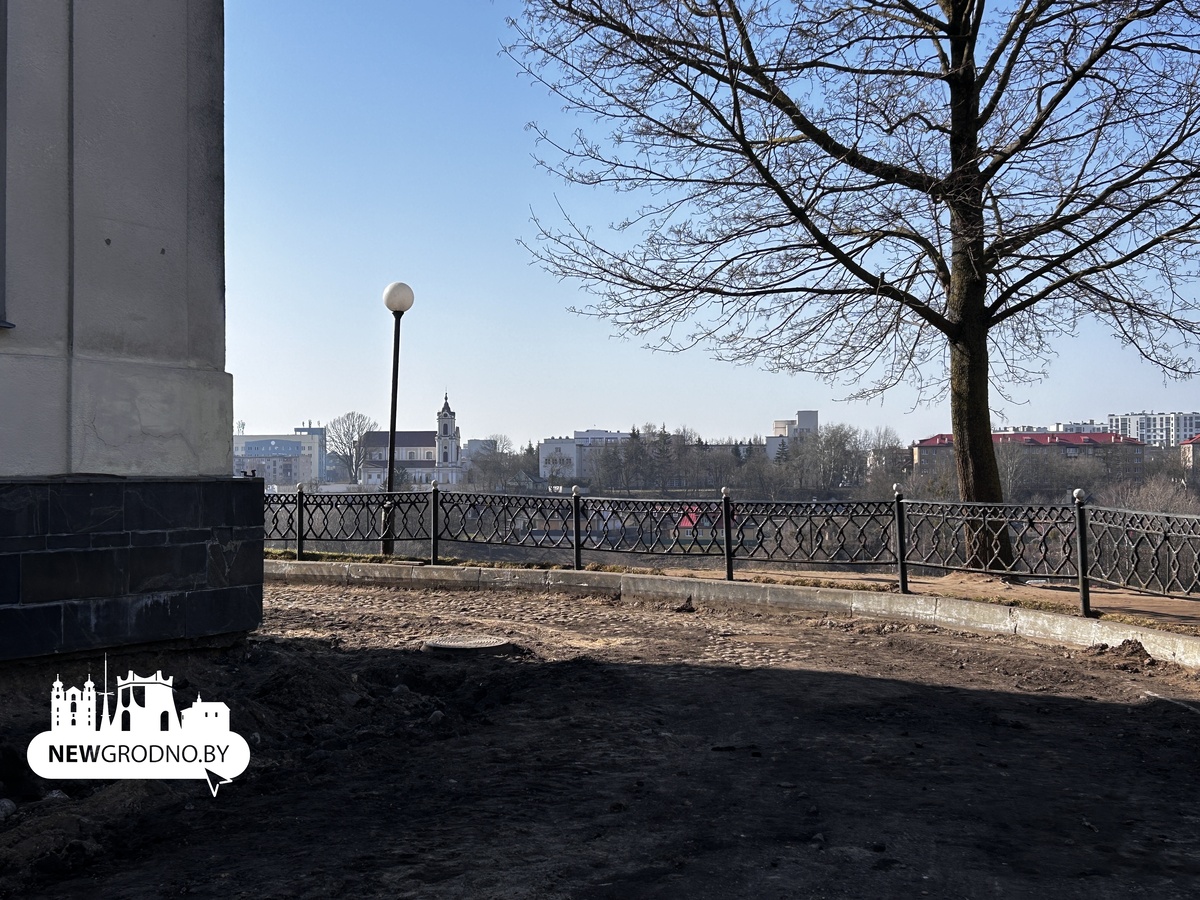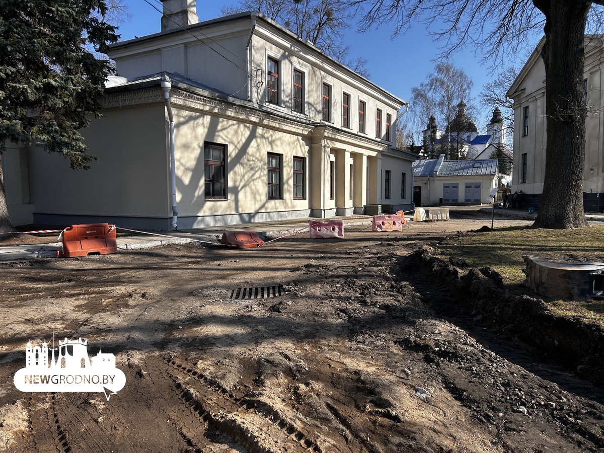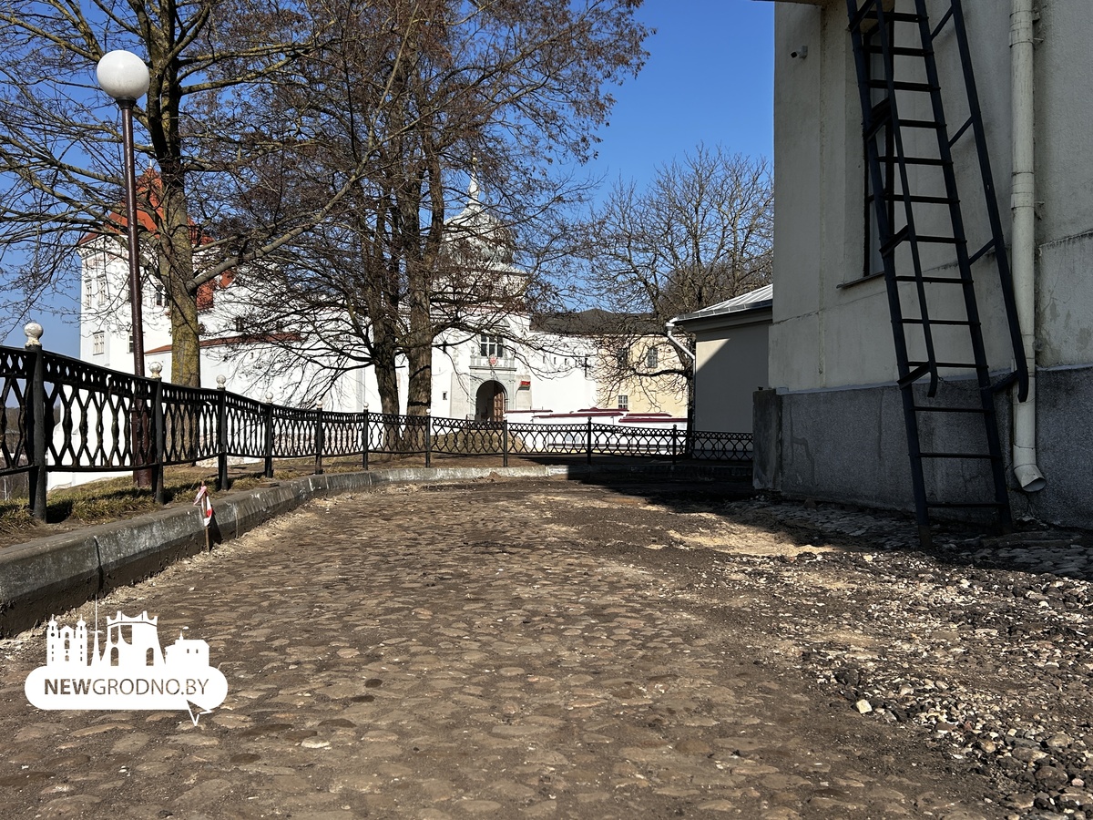 На территории Нового замка в Гродно развернулись масштабные работы по благоустройству. Один из этапов – обновление дорожек и проездов. Старый асфальт здесь сняли, чтобы уложить новый слой покрытия.