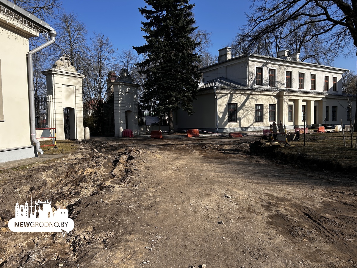 На территории Нового замка в Гродно развернулись масштабные работы по благоустройству. Один из этапов – обновление дорожек и проездов. Старый асфальт здесь сняли, чтобы уложить новый слой покрытия.