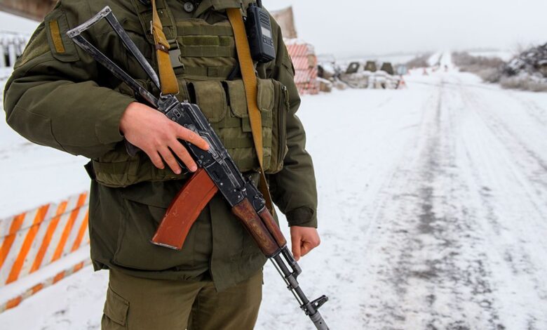 На кадрах видно, как агрессивные женщины напали на военных и стаскивали маскировочную сетку с блокпоста.