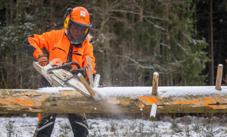 С тех пор для Вики началась пора непростых тренировок: валка леса, раскряжевка, обрезка сучьев, замена цепи — не просто на точность, но и на скорость.