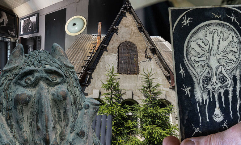 Этот дом на ул. Печерской в Могилеве давно успел стать местной достопримечательностью. Одни объезжают его стороной, другие восхищаются, третьи сочувствующе кивают головой. Виной всему — непонятные скульптуры, созданные с легкой руки хозяина дома Валерия. Особый колорит месту добавляет соседство с кладбищем. Мужчина говорит, что в темное время суток местные часто путают его скульптуры с надгробными памятниками — так жутко они выглядят.