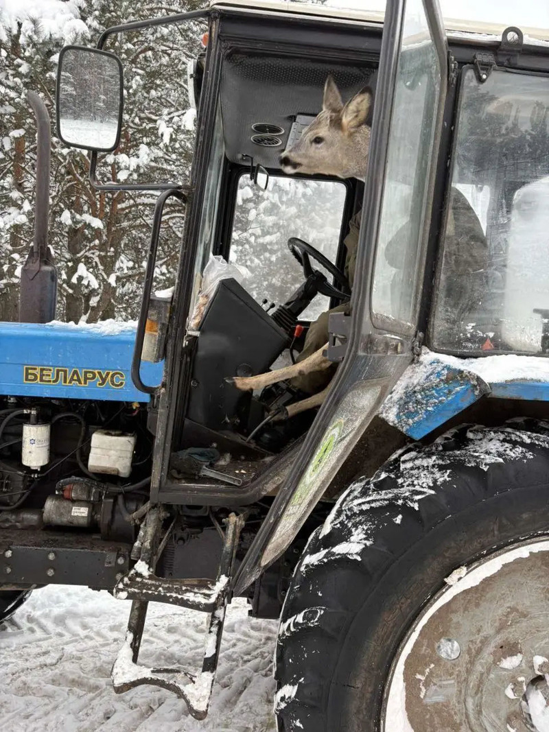 Лесники угостили косулю хлебом, после чего она без страха забралась в кабину трактора, чтобы согреться, сообщает портал.