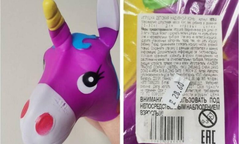 Детская игрушка «надувной конь (скорее это единорог. — Прим. ред.) артикул 1679−2» китайского производства не соответствует нормам гигиенической безопасности, сообщает Госстандарт. Интенсивность запаха этого «зверя» составляет три балла при норме не более двух баллов для игрушек, предназначенных детям старше 3 лет. Продавать надувное копытное нельзя уже с 23 августа.