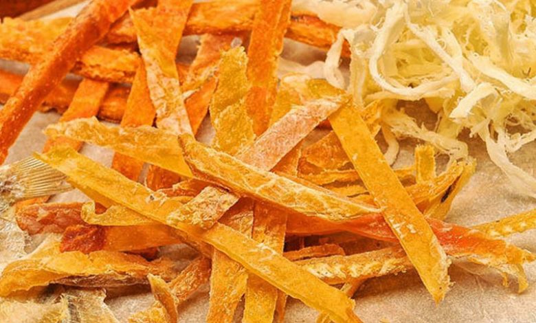 - Вяленая пищевая рыбная продукция. Чипсы «Икряные» из фарша кальмара с добавлением икры сельди.