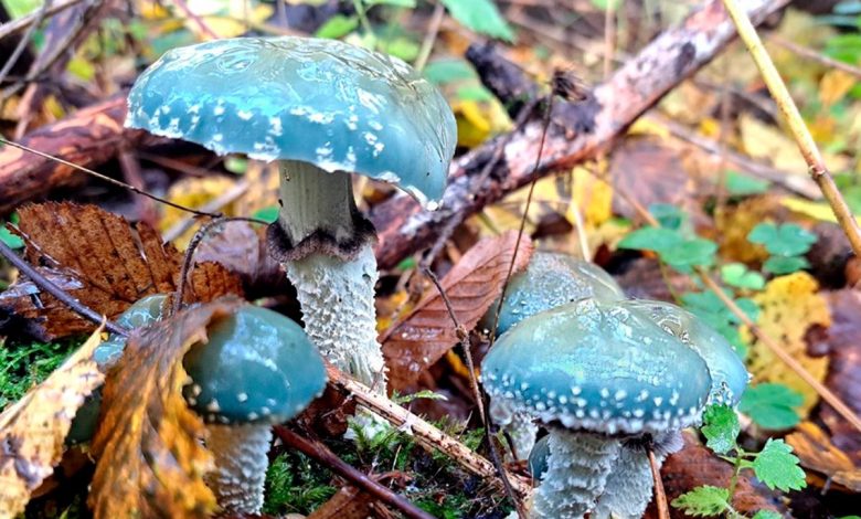 Называется это чудо строфария сине-зеленая. Цвет у гриба действительно оригинальный. Кажется, что он как будто инопланетный, ну или как минимум сказочный.